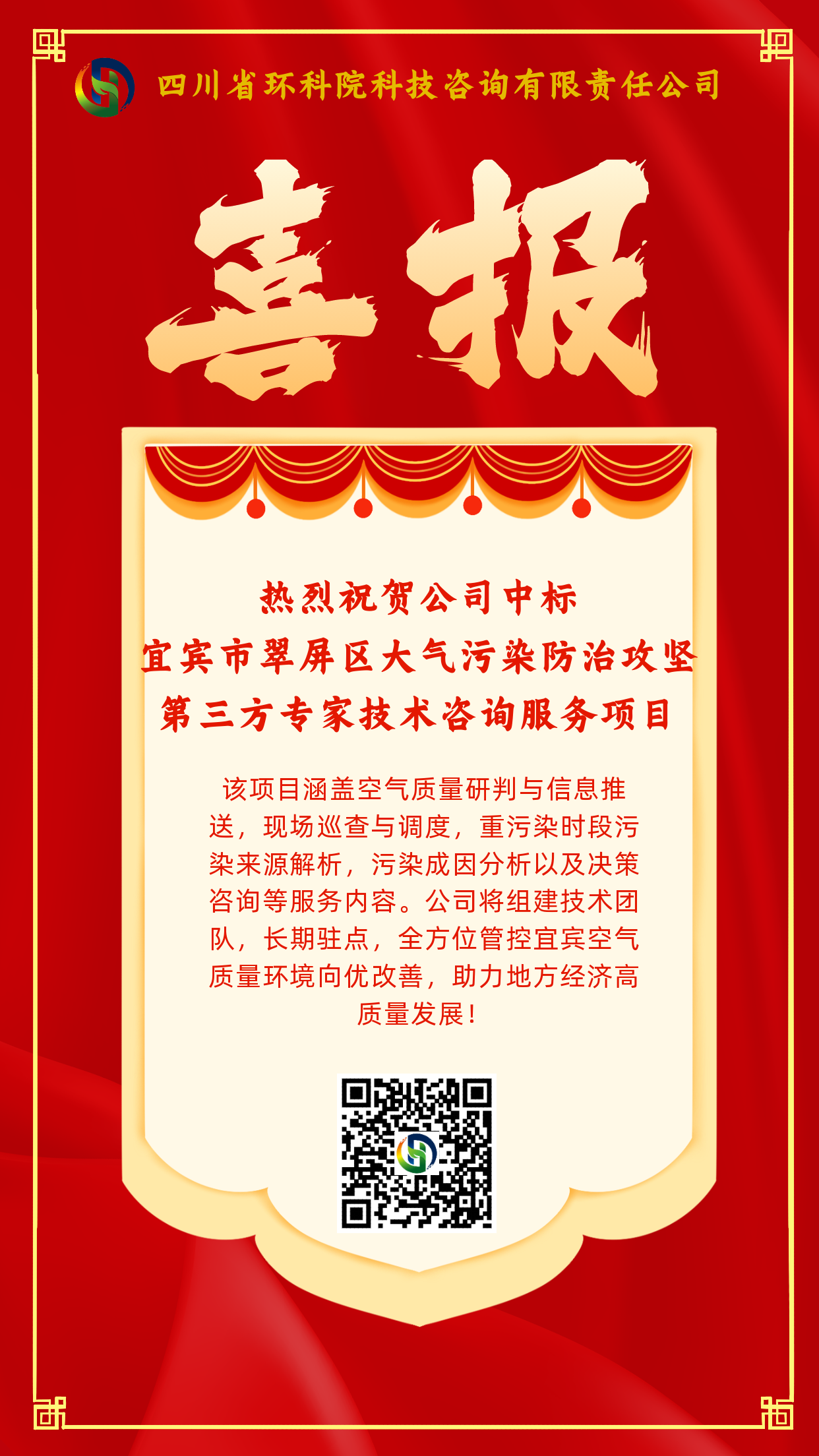 喜報-熱烈祝賀公司中標宜賓市翠屏區大氣污染防治攻堅第三方專家技術咨詢服務項目